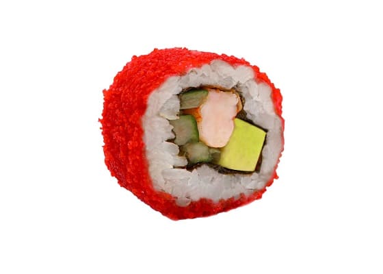 Креветка, огурец, авокадо, икра летучей рыбы, рис, нори