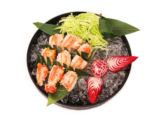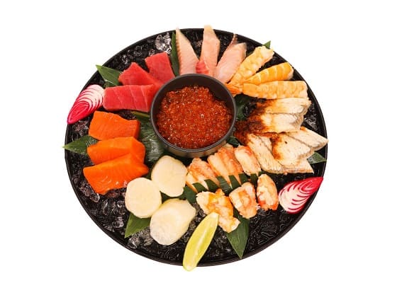 Краб фаланга, креветка, тунец, лосось, угорь, окунь, гребешок, икра лосося.