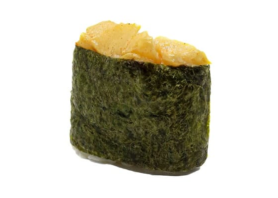 мидии, сыр твёрдый, майонез, икра летучей рыбы, кунжут белый.