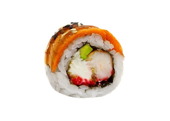 Лосось, сливочный сыр, креветка, авокадо, икра, терияки, кунжут, рис, нори