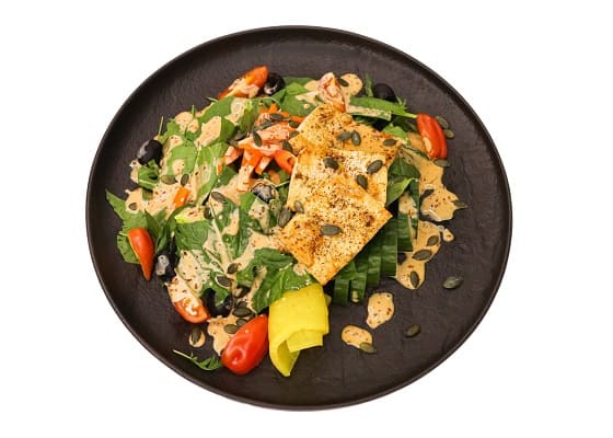 Овощной салат с жареным сыром тофу