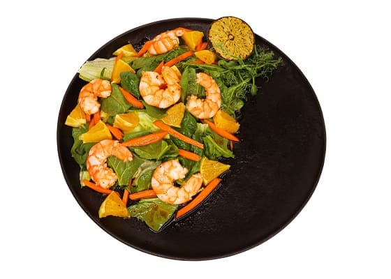 Салат Айсберг, креветка, шпинат , апельсин, морковь, соево-имбирная заправка