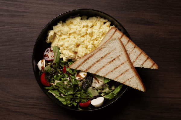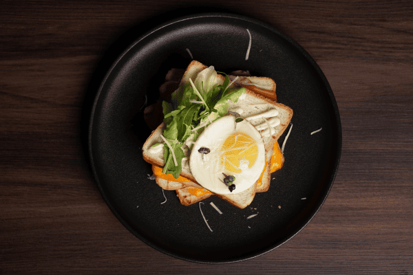 хлеб тостовый, соус цезарь, ветчина, сыр, микс салатов, яйцо куриное.